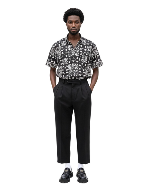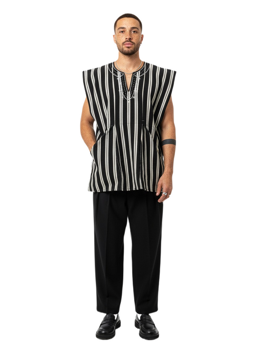 Mandarin Collar Black Panel & White Striped Ankara Shirt -